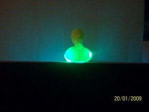 The construction was very simple. Making a small hole in the bottom of each duck, I inserted an LED and glue gunned it into place. I checked the effect with the batteries to see the result.