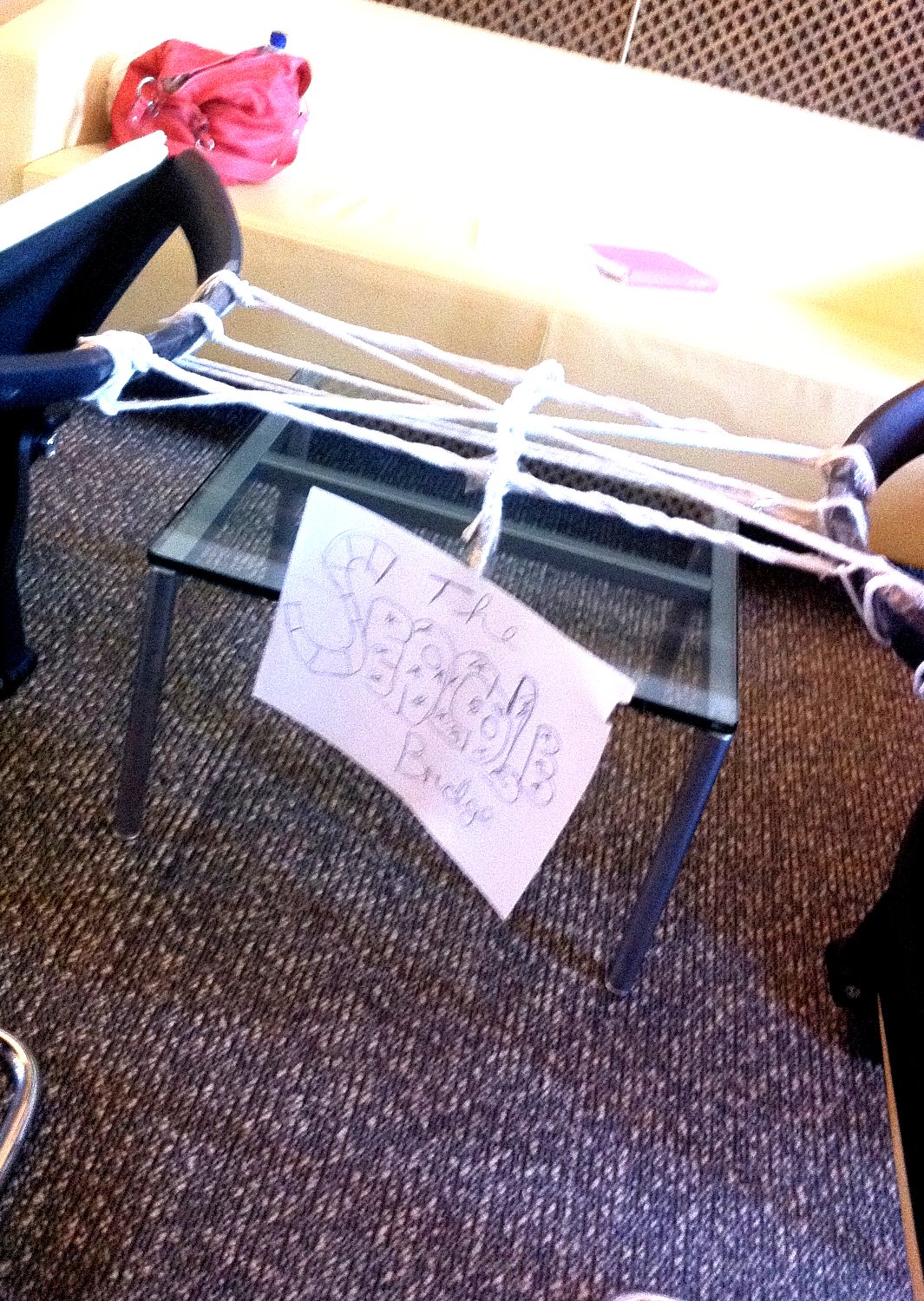 It’s a lot of fun, and I think the people from the lab get as much out of it as the girls do! Last week’s activities at Hursley saw 48 students learn some Java coding in the morning, and in the afternoon to build bridges using paper, string, tape, and craft sticks – they had to support a number of text books in order to be successful. The girls were divided into teams named after different inspirational women in science, technology and other areas of achievement. Here are some of the resulting pieces of work: